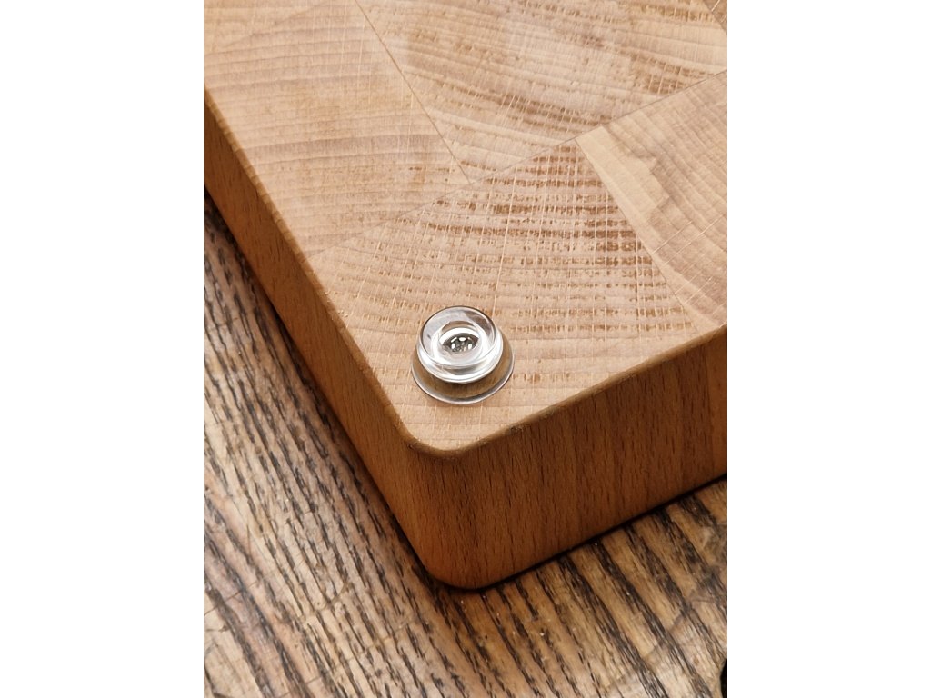 Sada 4ks protiskluzových nožiček vyrobených z transparentního silikonu. K prkénku jsou připevněny nerezovými vruty s nerezovou podložkou.